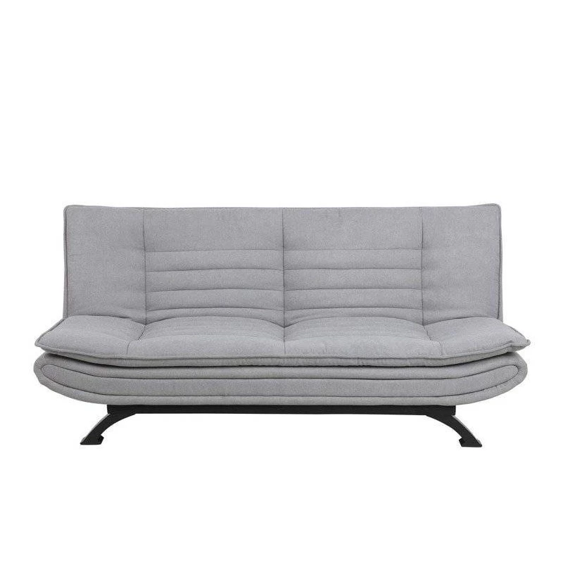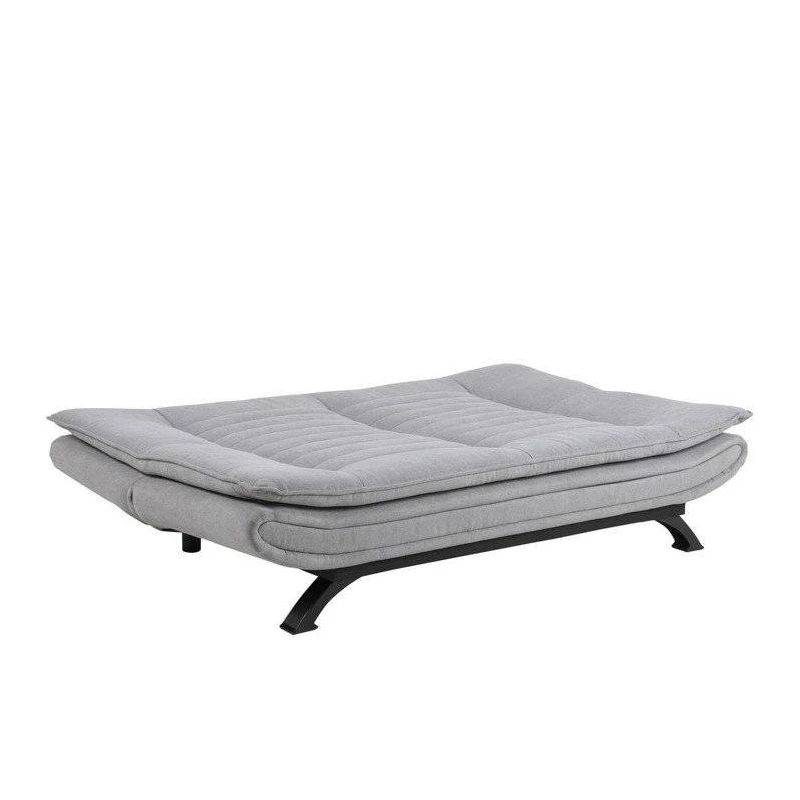 Szerokość mebla\196 cm, Wysokość mebla\91 cm, Głębokość mebla\98 cm, Waga\42 kg, Długość materaca [cm]\196, Głębokość siedziska [cm]\59,5, Kolor\szary, Kolor nóg\czarny, Kolor siedziska\jasny szary, Maksymalna nośność powierzchnia główna [kg]\110, Materiał\Tkanina , Materiał bazowy nóg\metal, Materiał powierzchnia nóg\metal, Materiał siedziska\tkanina, Materiał tapicerki\92% poliester / 8% nylon, Opis montażu\częściowo zmontowane, Specjalna funkcja\rozkładane, pionowe przeszycia , Szerokość materaca [cm]\123, Szerokość siedziska [cm]\196, Typ / Kształt nogi\kwadrat, Typ siedziska\Enjoy, Wykończenie nóg\malowana proszkowo, Wysokość nogi [cm]\13, Wysokość oparcia [cm]\50, Wysokość siedziska maks. [cm]\39, Stan \Nowy